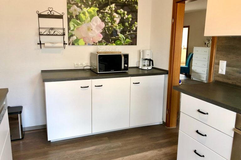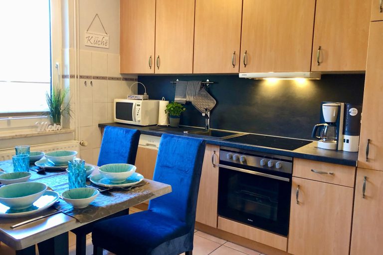 In der Küche finden Sie allerhand Komfort. Neben Backofen, Mikrowelle, Toaster, Eierkocher und Wasserkocher, erleichtert der Geschirrspüler den Abwasch.